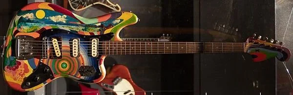 Painting your guitar is somewhat of a right of passage for any musician; you’re a little bored and maybe a little inebriated so you decide to pull out the brushes and spray cans. Who among us hasn’t succumbed to the temptation at least once in our lives? And 99% of the time you quickly realize once you sober up that it was a huge mistake - cause it doesn’t automatically make you as cool or as good as Hendrix - so you strip the paint down to the natural finish and move along with a good story and a lesson learned. Even for these music icons, the painted guitar is often a short lived phase that perfectly capture’s the era in which it existed’s zeitgeist, and like a flash, it is often gone as quickly as it shows up. The fleeting and transient nature of this endeavor is what makes the whole thing fun - a spirited talisman to a monumental time in not only an artists personal life and musical journey, but in pop culture as well. So with this in mind, here are the 15 coolest painted rockstar guitars.